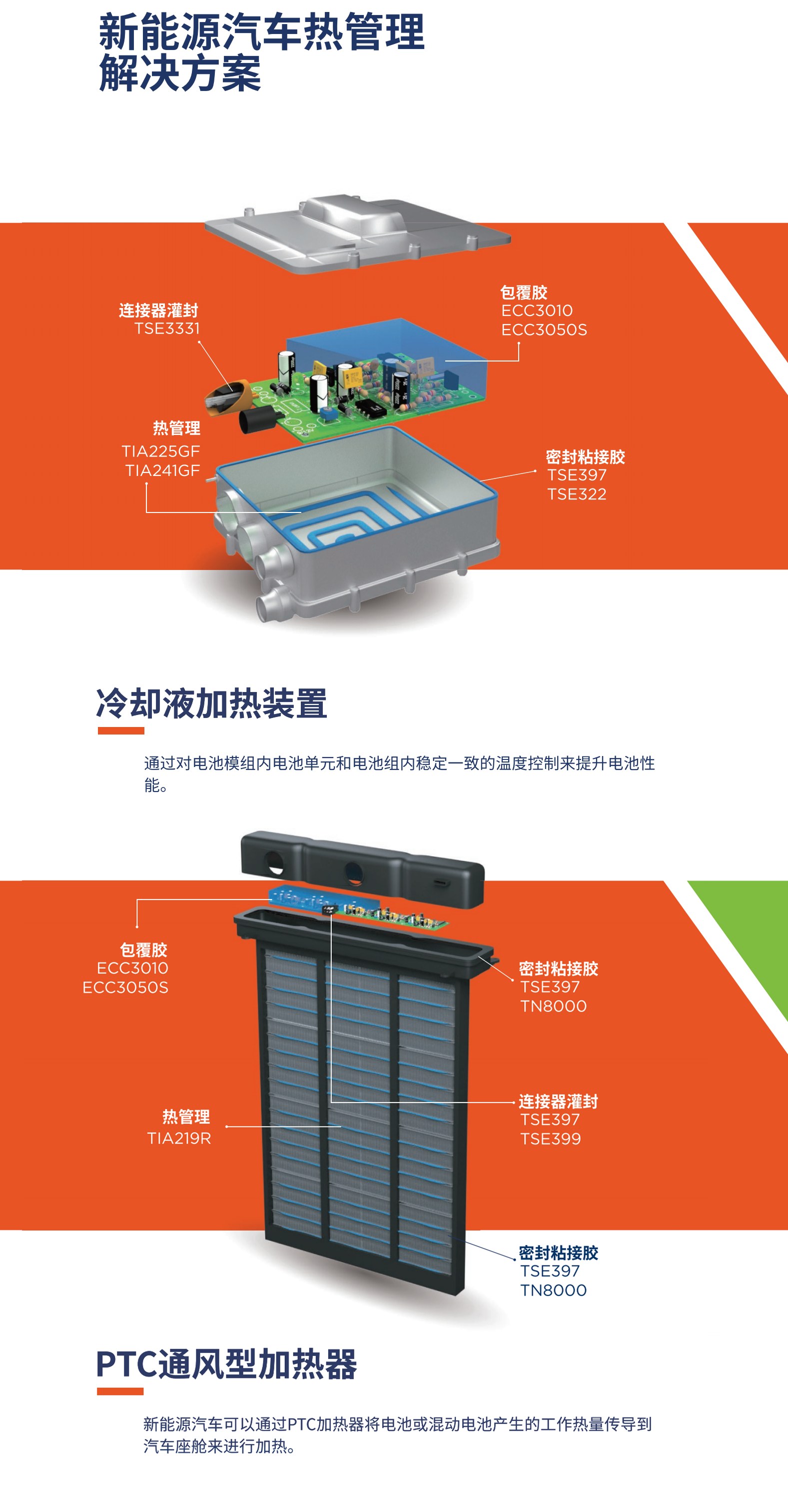 冷却液加热装置:连接器灌封、密封粘接、包覆胶、热管理。