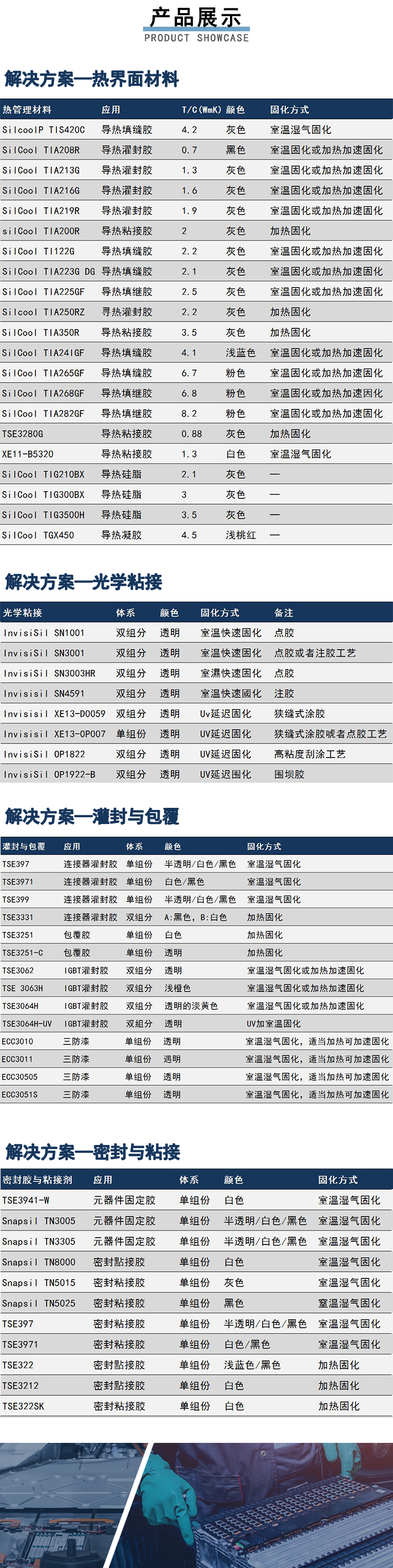 逆变器和IGBT模块:密封����� �������Ƴ������������ �������Ƴ����������� �������Ƴ������������ �������Ƴ�������粘接胶、绝缘凝胶、包覆胶、热管理。